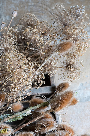 Natural allium and teasel seed heads for wreath making